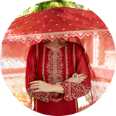 Ruby is a tribute to timeless nobility, inspired by the concept of "The Crimson Heritage" (Surkh Virasat). It features a deep, ceremonial Maroon canvas that symbolizes prosperity and dignity. The design is defined by intricate, antique-gold threadwork that mimics the scalloped stone jali (lattice) of...- $105.00