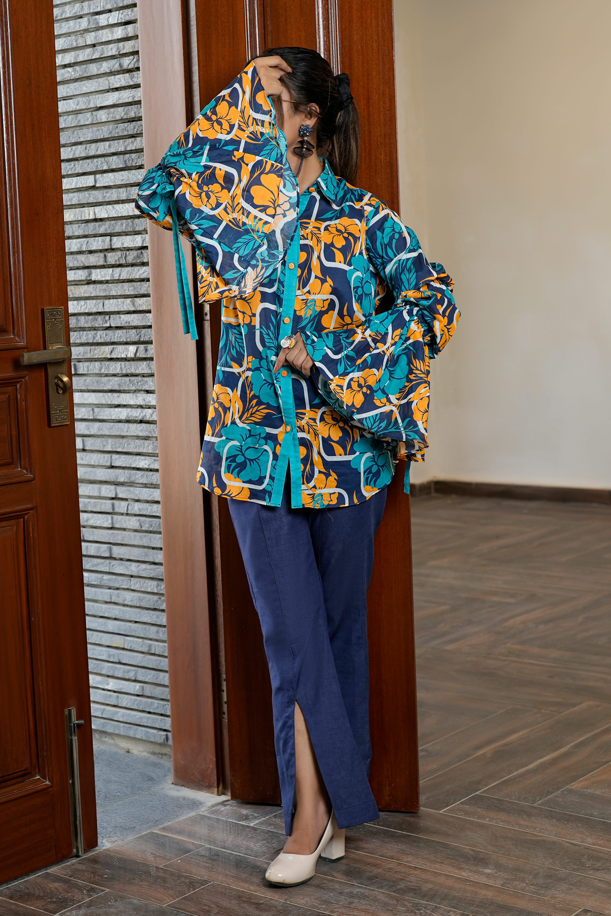 Make a bold fashion statement with the "Inaaya" western stitched two-piece set. This ensemble features a vibrant floral print in a contemporary and stylish silhouette. Available in sizes XS, S, M, L, XL, and Custom Size.