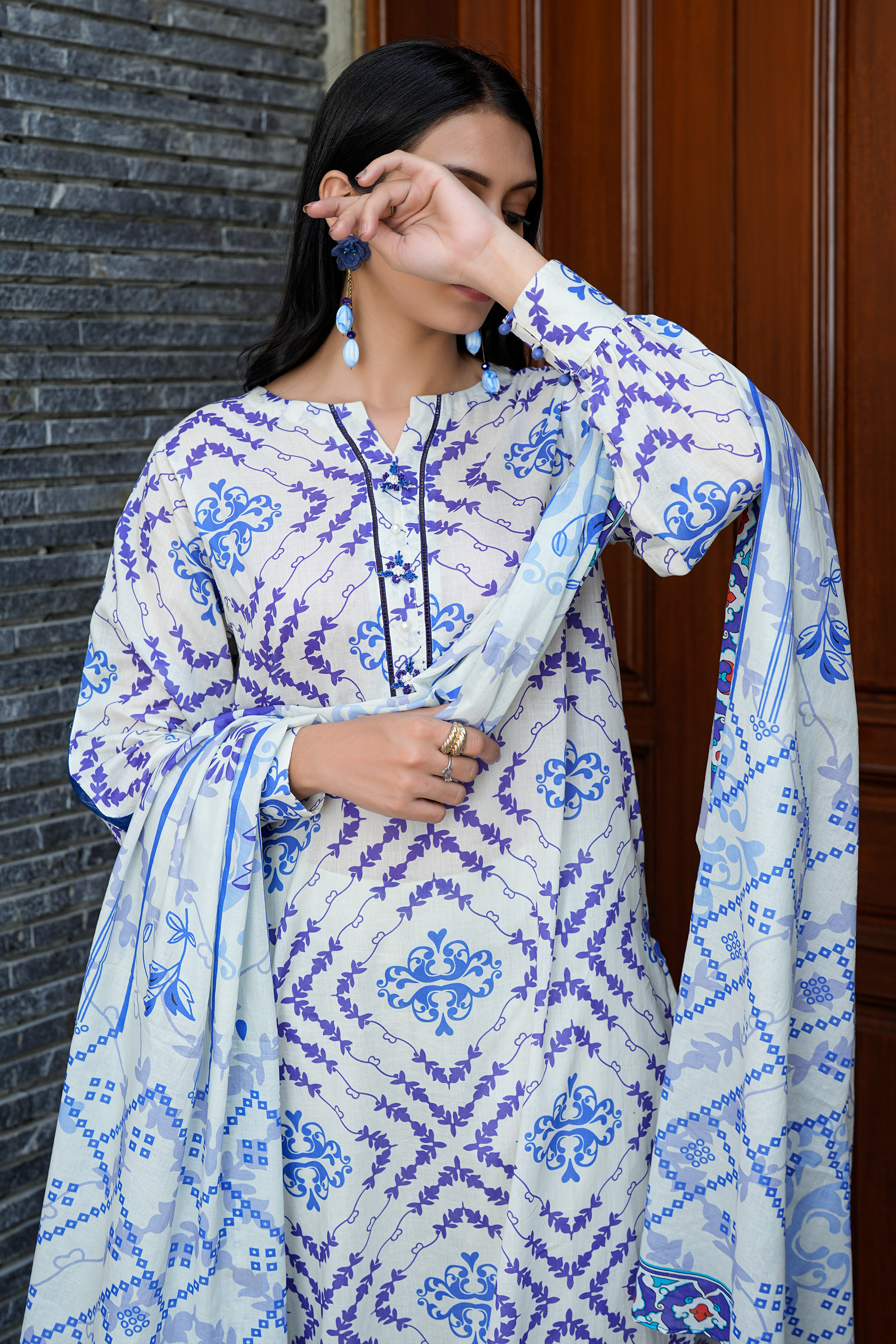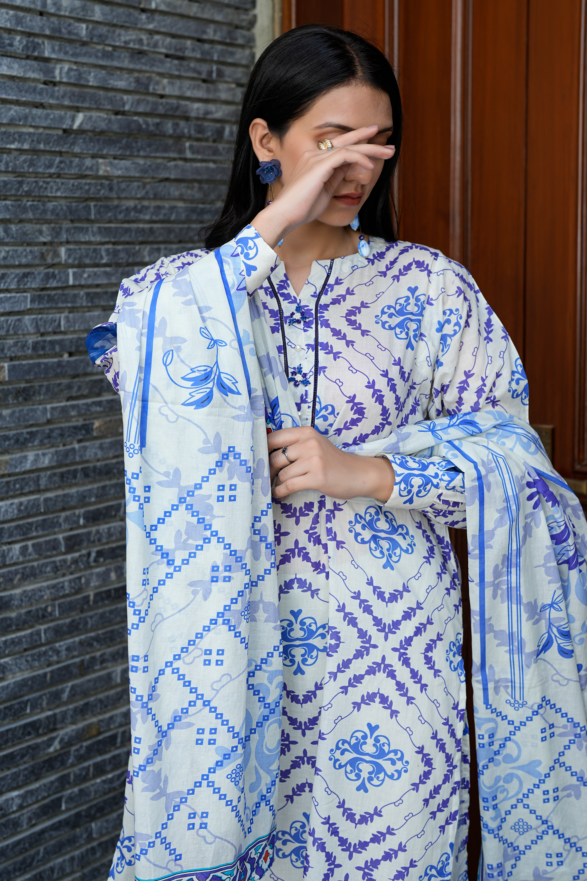Embrace the captivating allure of "Meher," a design that celebrates the beauty of traditional patterns with a modern touch. Choose your preferred style: the creative freedom of unstitched fabric or the ready-to-wear elegance of our eastern stitched option.