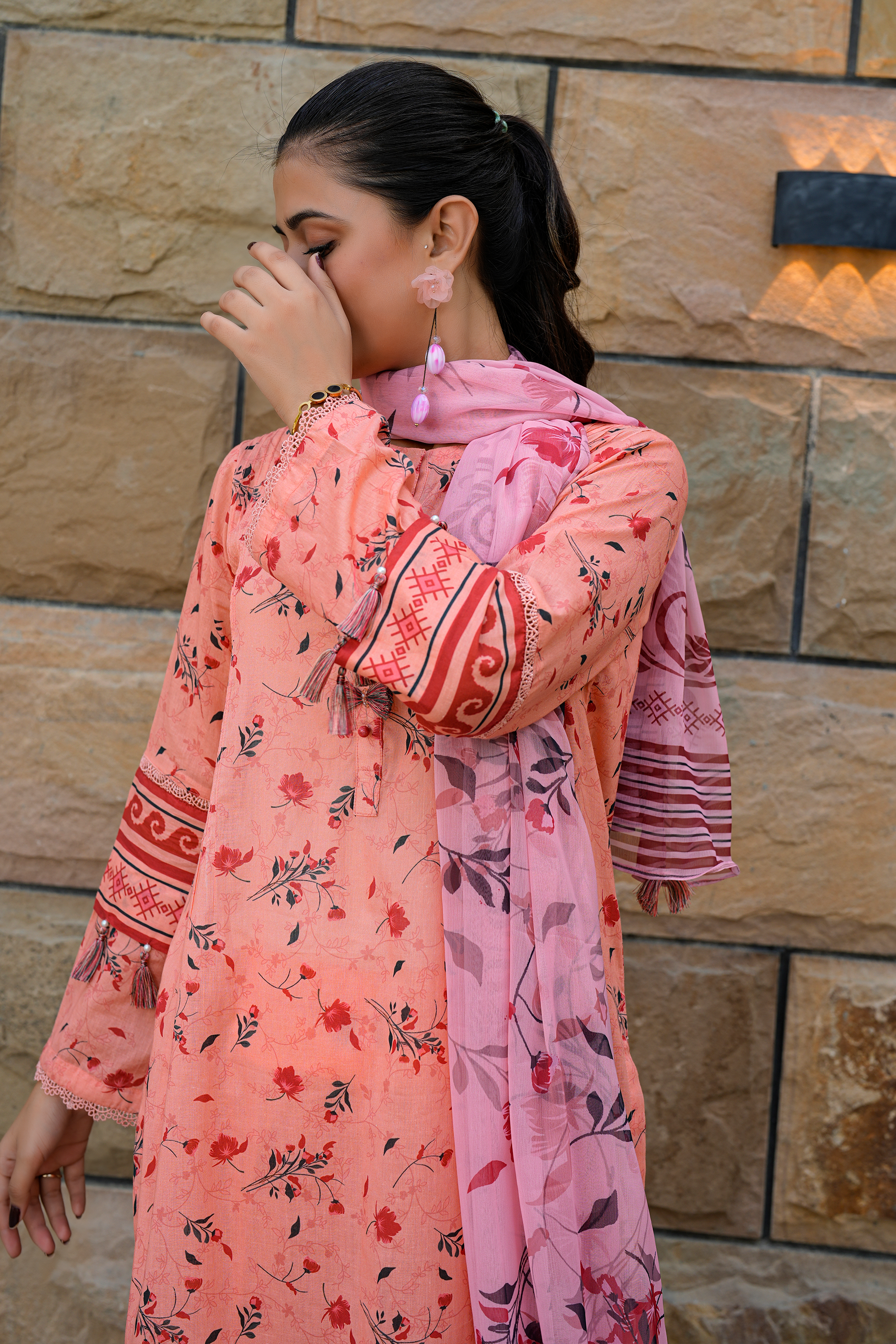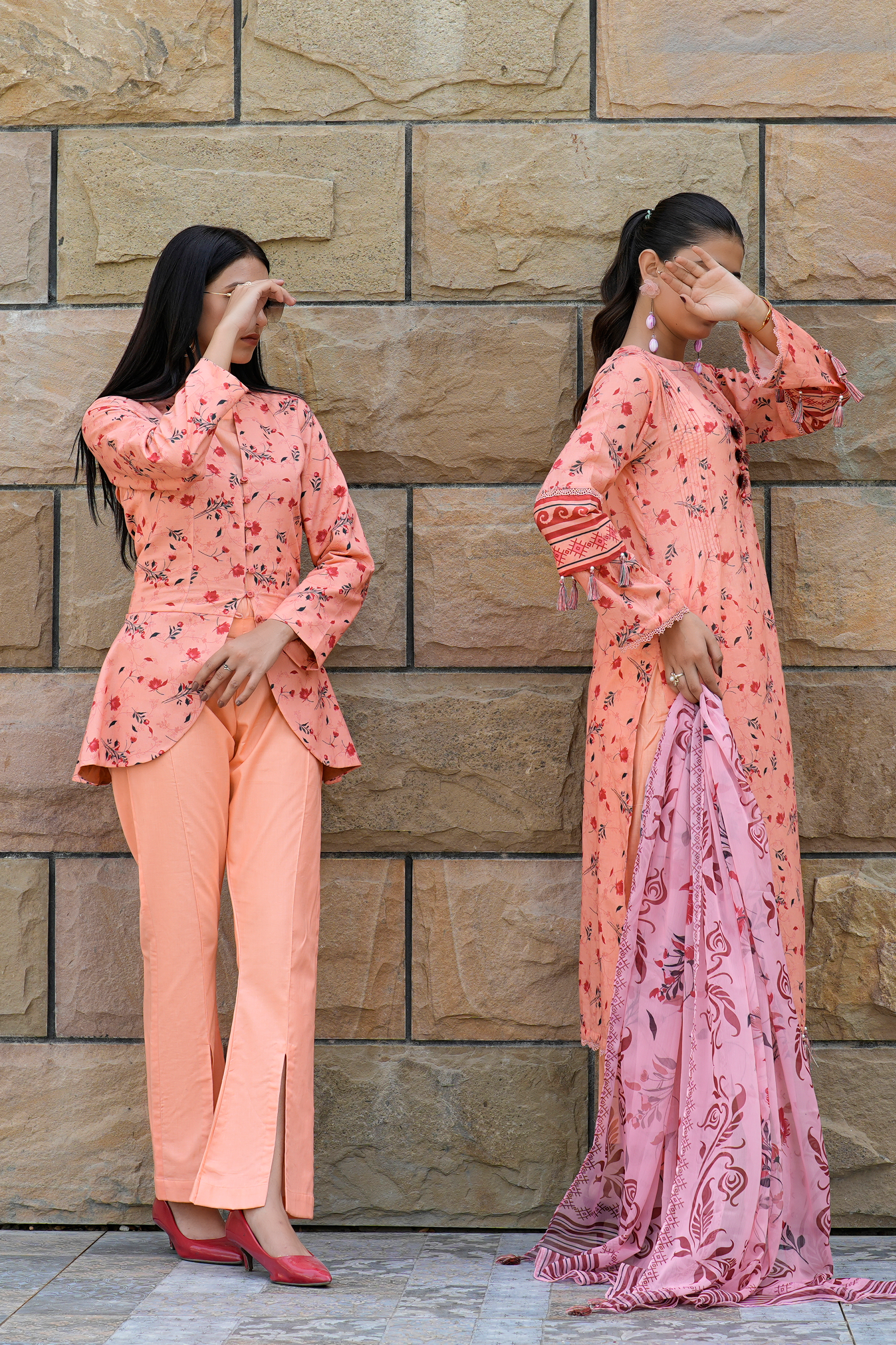 Embrace the delicate allure of "Zareen," a design that whispers of feminine grace with its soft hues and floral accents. Choose your preferred style: the creative freedom of unstitched fabric or the ready-to-wear elegance of our eastern stitched option.