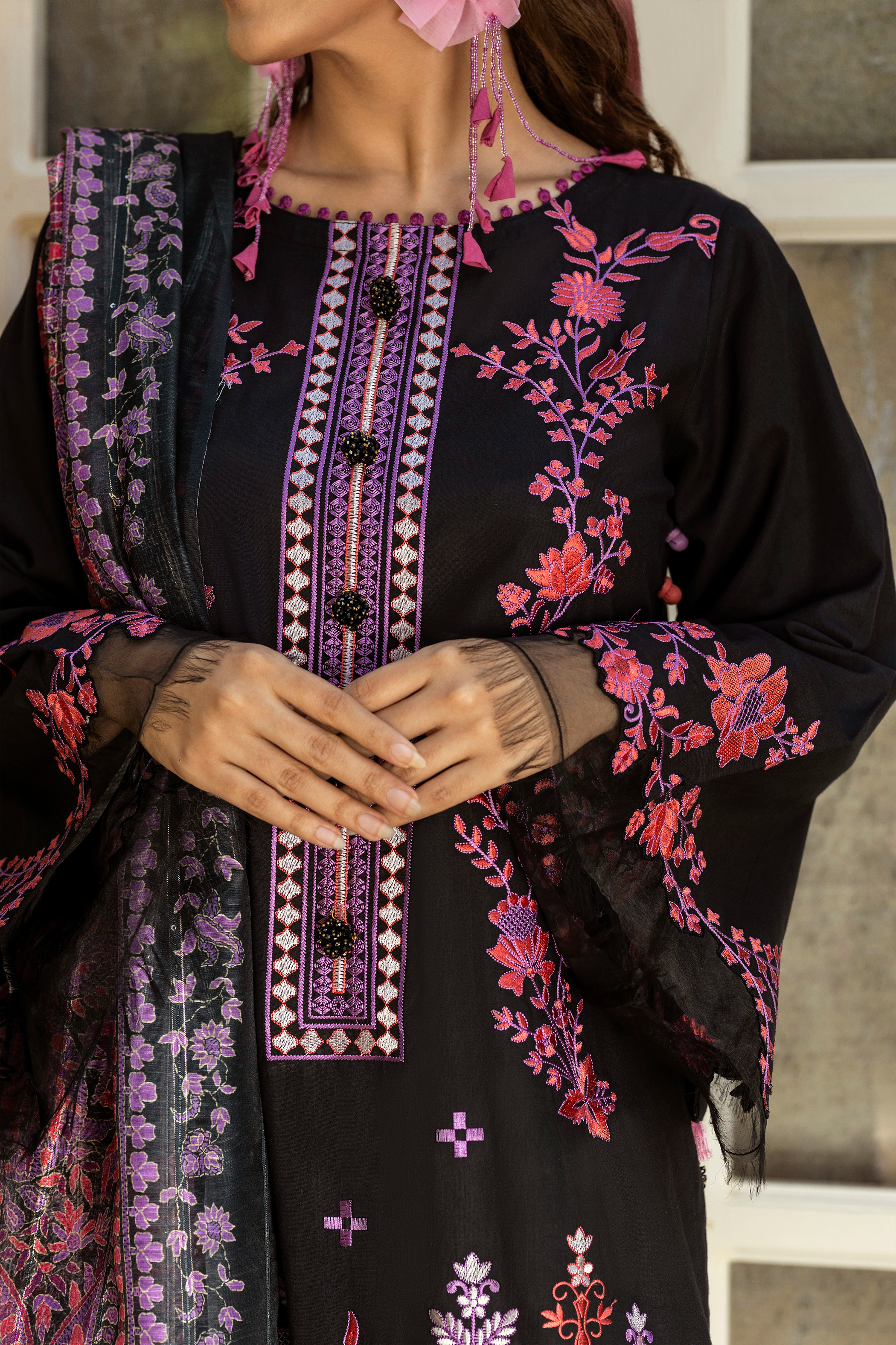 Mehrbano is a bold and timeless design, blending dark elegance with intricate embroidery. Its traditional Mughal-inspired motifs combined with modern embellishments make it a statement festive outfit, perfect for Ramadan, Eid, and formal gatherings.
