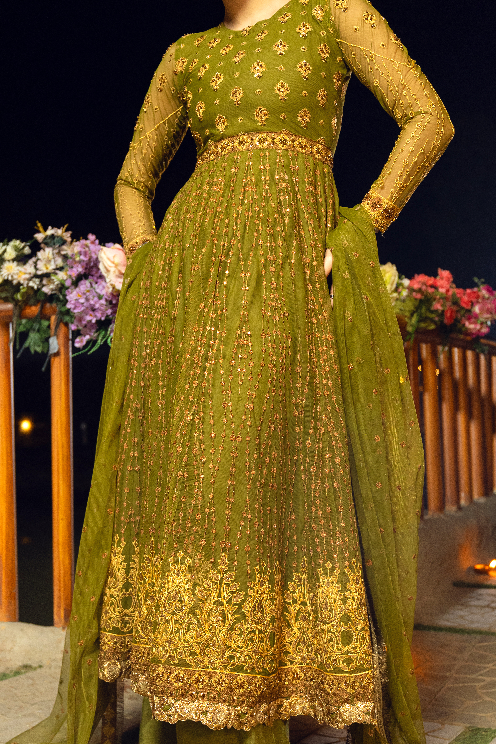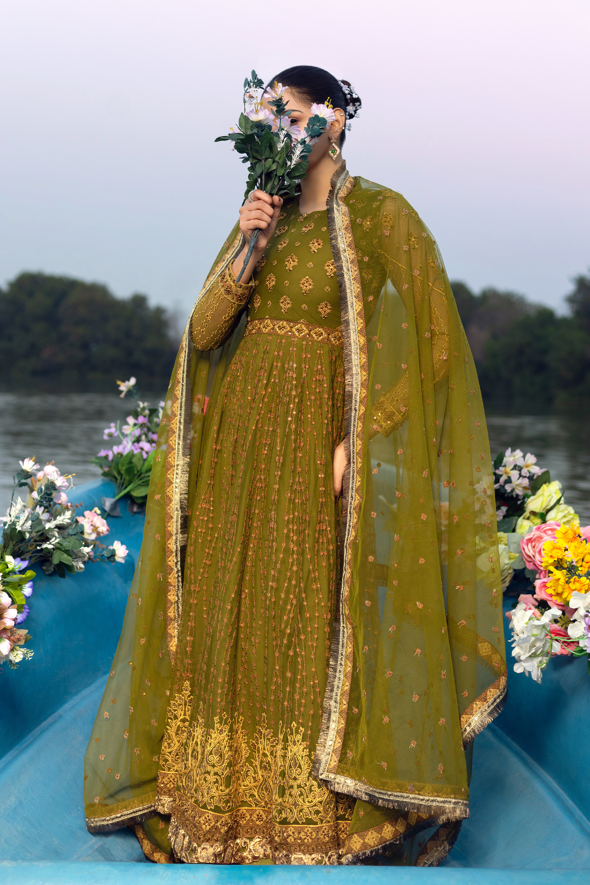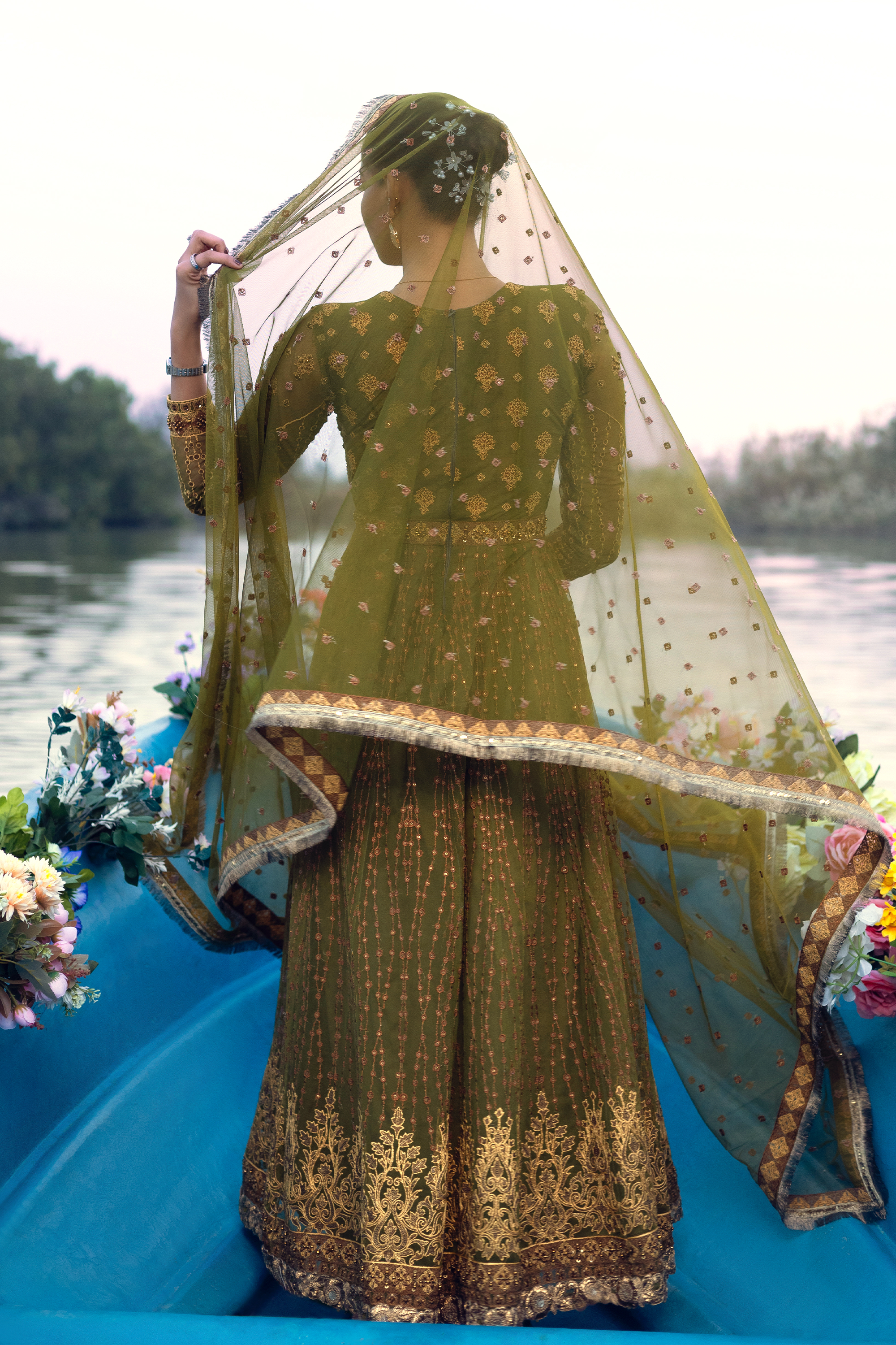 Khired is designed for women who embrace heritage fashion with a modern twist. Its refined embellishments and regal charm make it a perfect choice for weddings, festive occasions, and grand celebrations. This dress is a true reflection of elegance, crafted for those who appreciate luxury with timeless artistry.