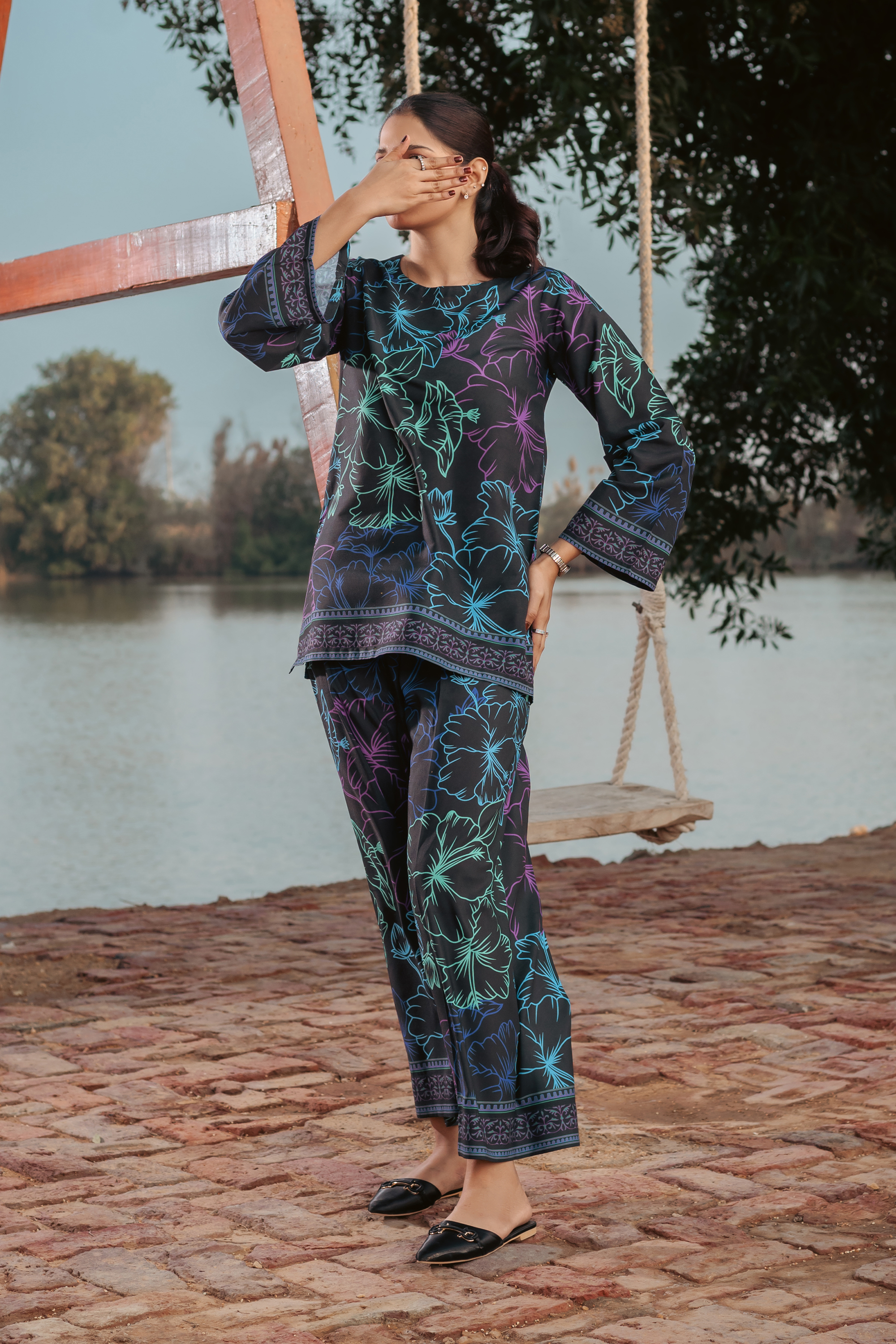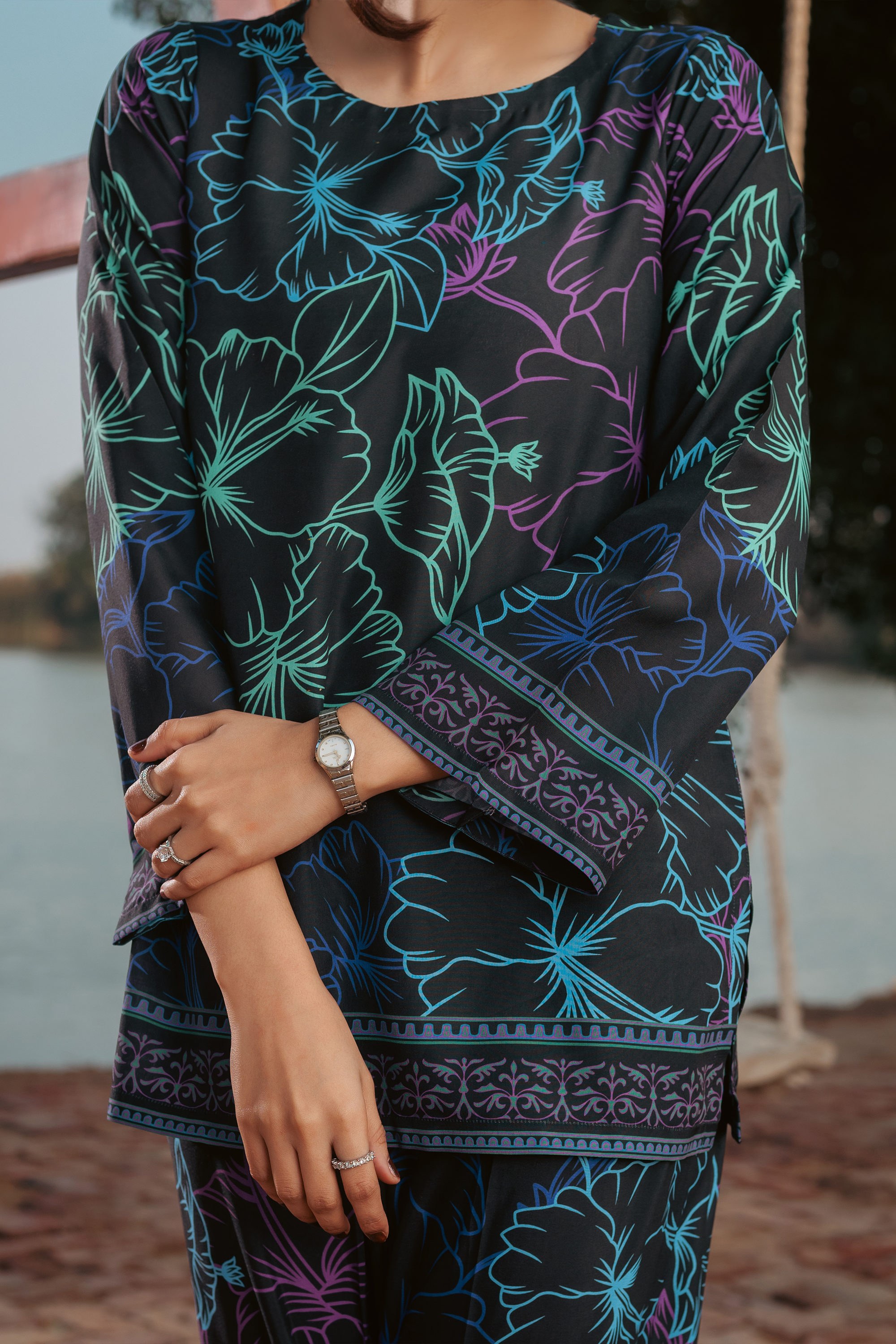 Lyra is a statement-making co-ord set that embodies grace and contemporary fashion. The short kurta is adorned with artistic patterns and finely crafted embellishments, enhancing its visual appeal. Paired with flowy, wide-leg pants, this ensemble strikes the perfect balance between sophistication and ease. Tailored in high-quality, wrinkle-free crepe, Lyra is designed for women who embrace comfort without compromising on style.