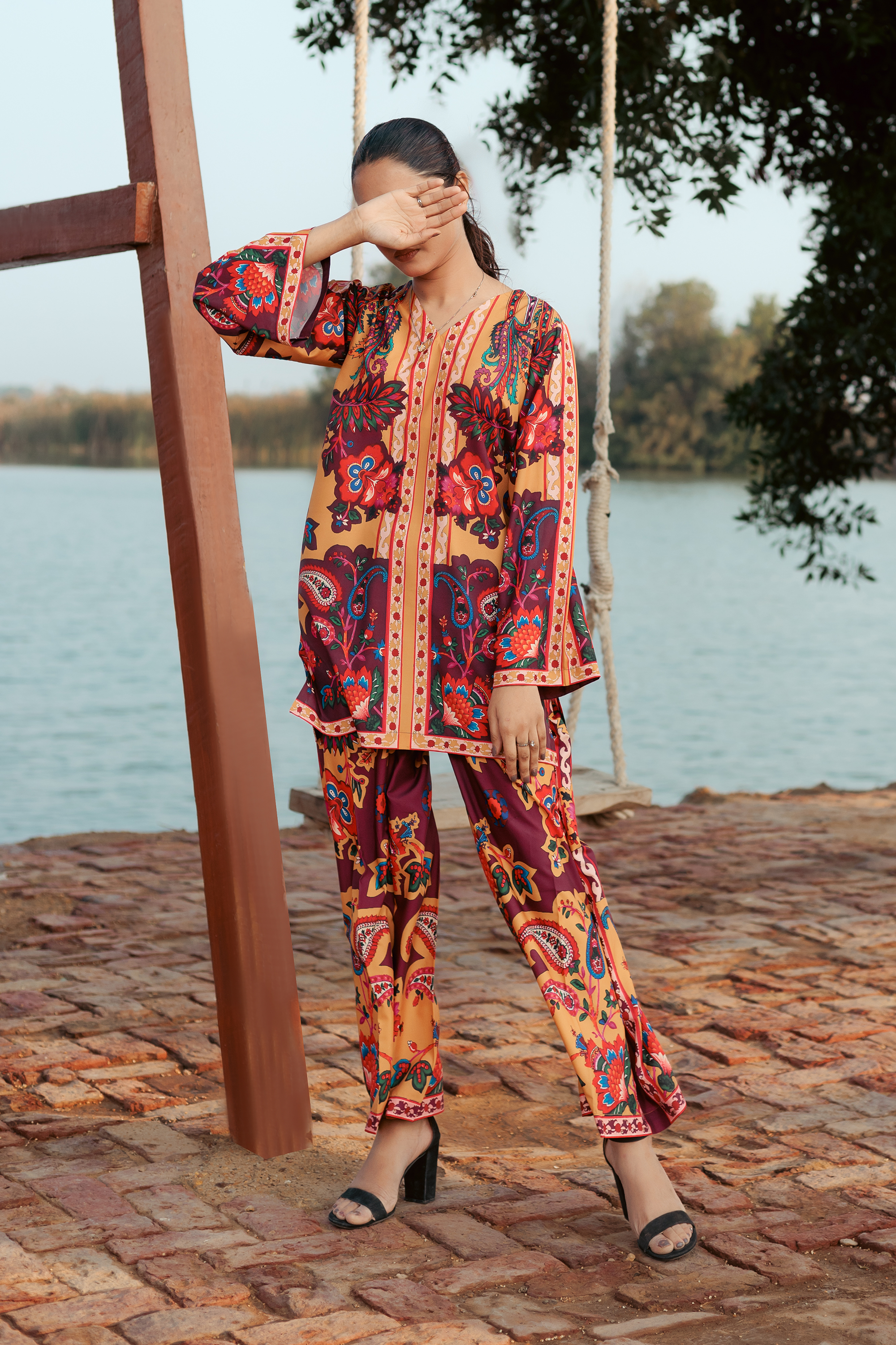 Natashaa is a stunning co-ord set designed to bring effortless charm and elegance to your wardrobe. The floral-printed short kurta features delicate detailing on the neckline and sleeves, creating a graceful yet contemporary appeal. Paired with matching wide-leg pants, this outfit offers a seamless blend of style and comfort. Crafted from luxurious, wrinkle-free crepe, Natashaa is an all-season staple, perfect for casual outings or chic gatherings.