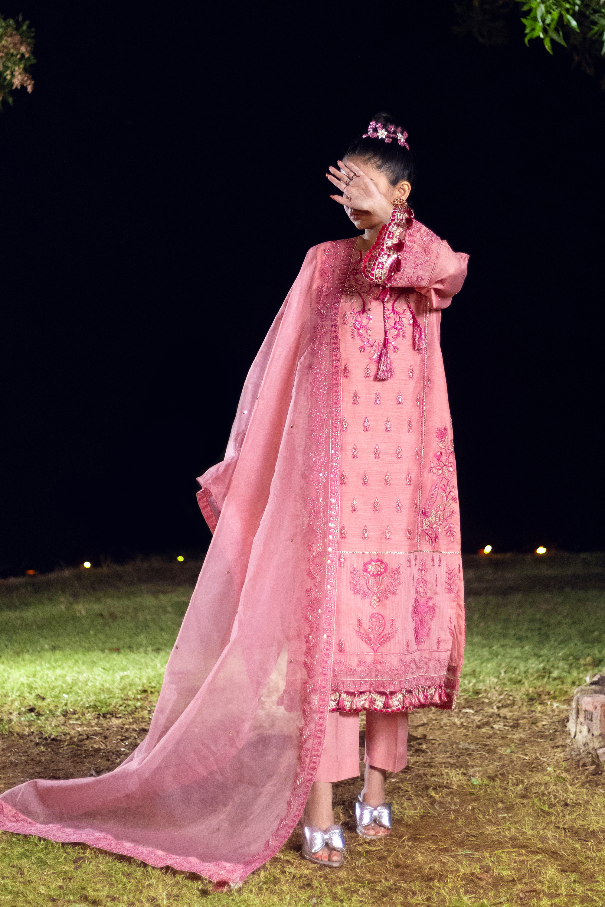 Designed with an ethnic yet contemporary aesthetic, Suml draws inspiration from traditional artistry while embracing modern tailoring. The soft pink hue symbolizes femininity and grace, making it an ideal choice for celebrations and festive gatherings. The intricate embroidery across the bodice and sleeves reflects the essence of heritage fashion, while the flowy silhouette ensures effortless charm.